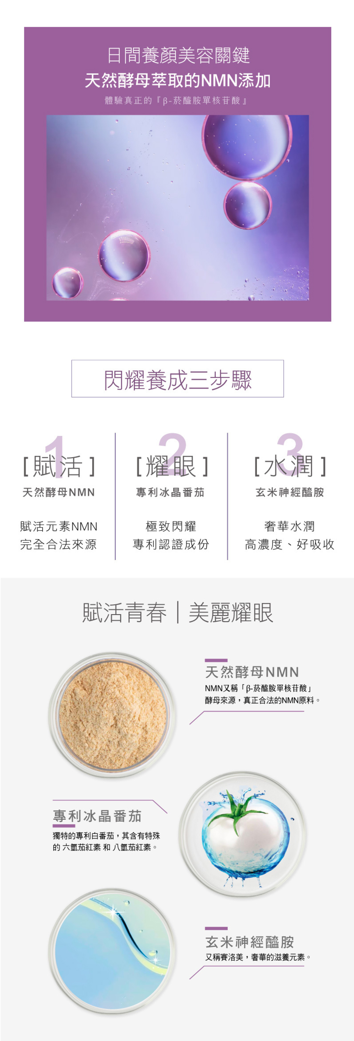 大家不免也會遇到強光日曬,自然老化,3C產品等等的危害,相信大家對於保養也有基礎的認識了,我們生而為人就是要好好的保養自己的身體。NMN能有效激活健康細胞並延緩衰老,晶雪絢就是市售首創添加NMN的美白保健食品喔...
