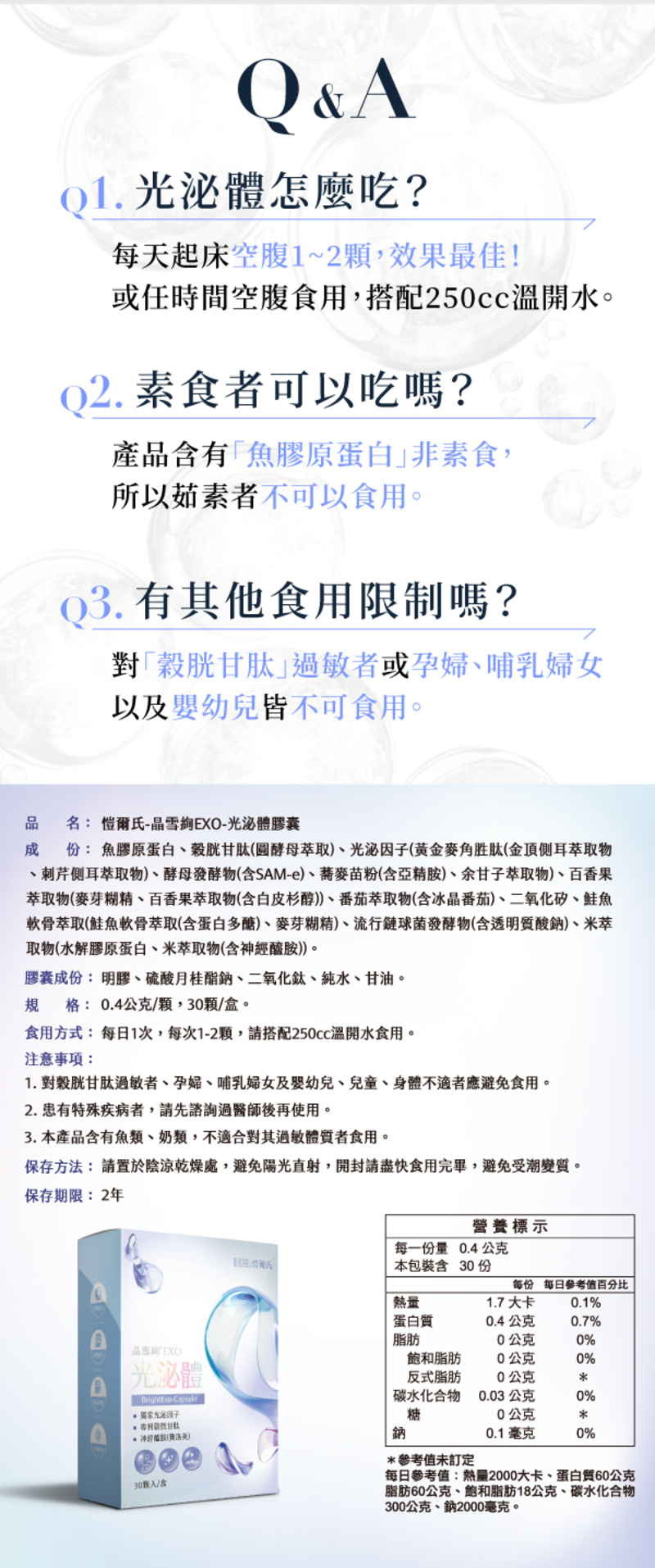 【愷爾氏】晶雪絢EXO_ 光泌體 膠囊(30顆/盒)=成分=